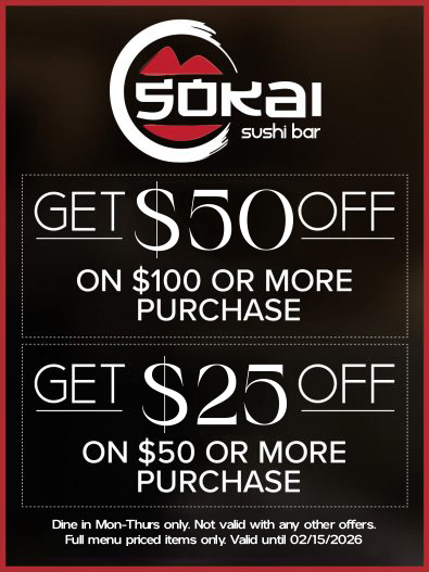 Unlock your special offer at any of these three participating Sokai locations and treat yourself to the flavors you love.